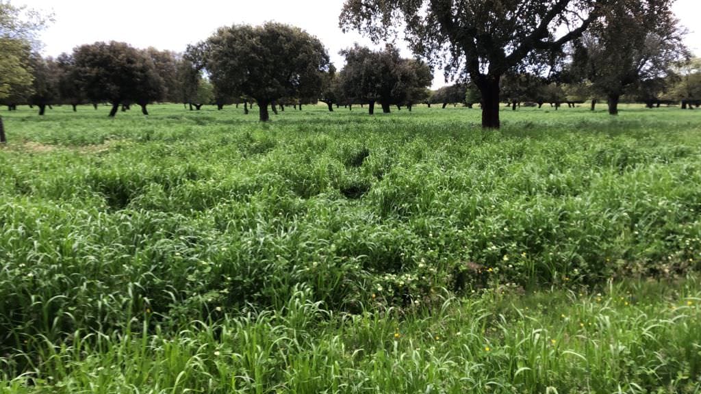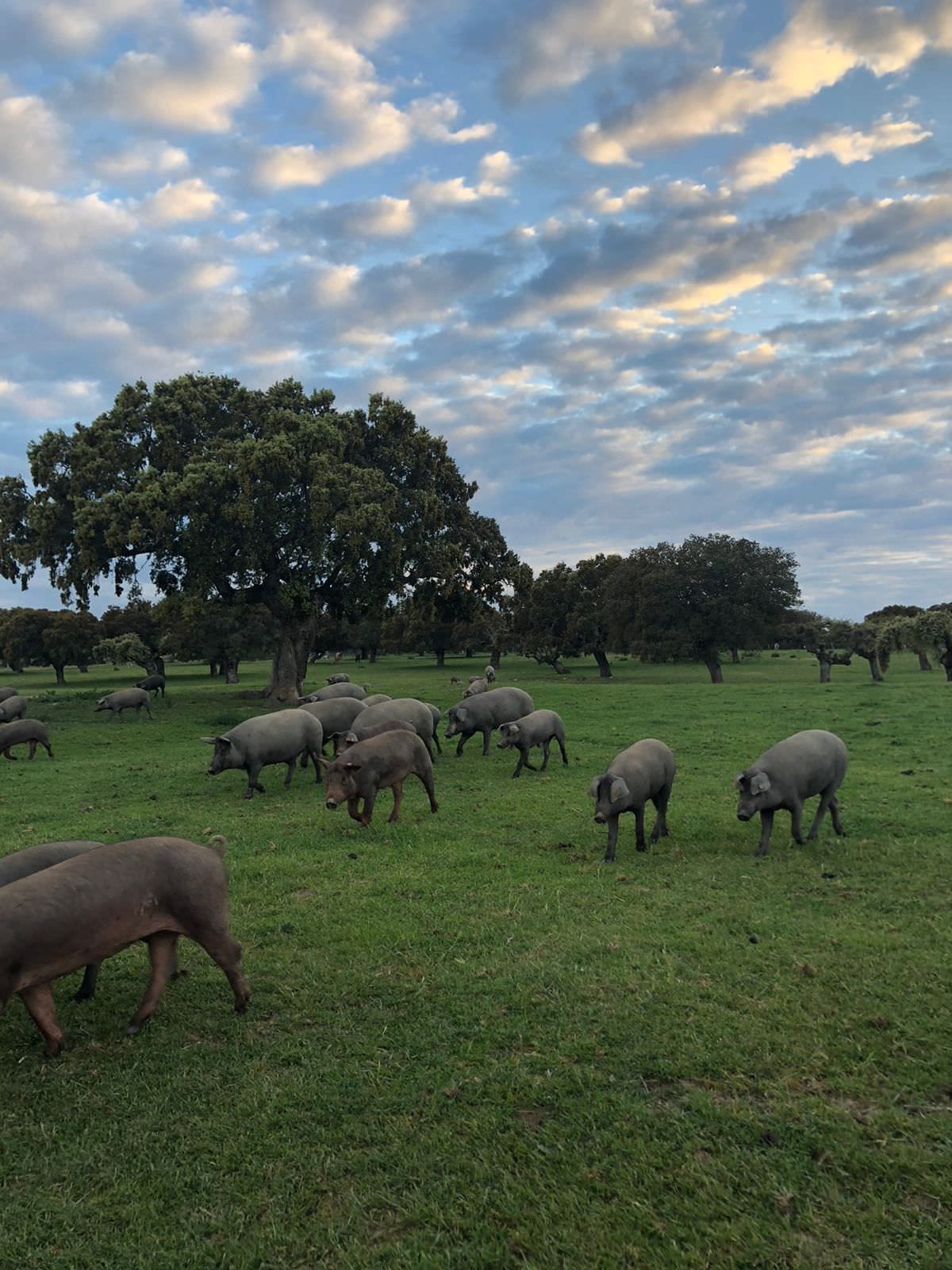 La dehesa es un bosque en el que conviven la encina, el roble, el alcornoque y otras especies arbóreas. Bajo este espectro de árboles de la misma familia, cuyo fruto es la bellota, distinta en cada especie, crece una hierba gramínea y leguminosa.